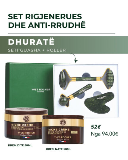 Çmimi origjinal qe: €110.00.€65.00Çmimi i tanishëm është: €65.00.Set rigjenerues dhe antirrudhë Riche Creme